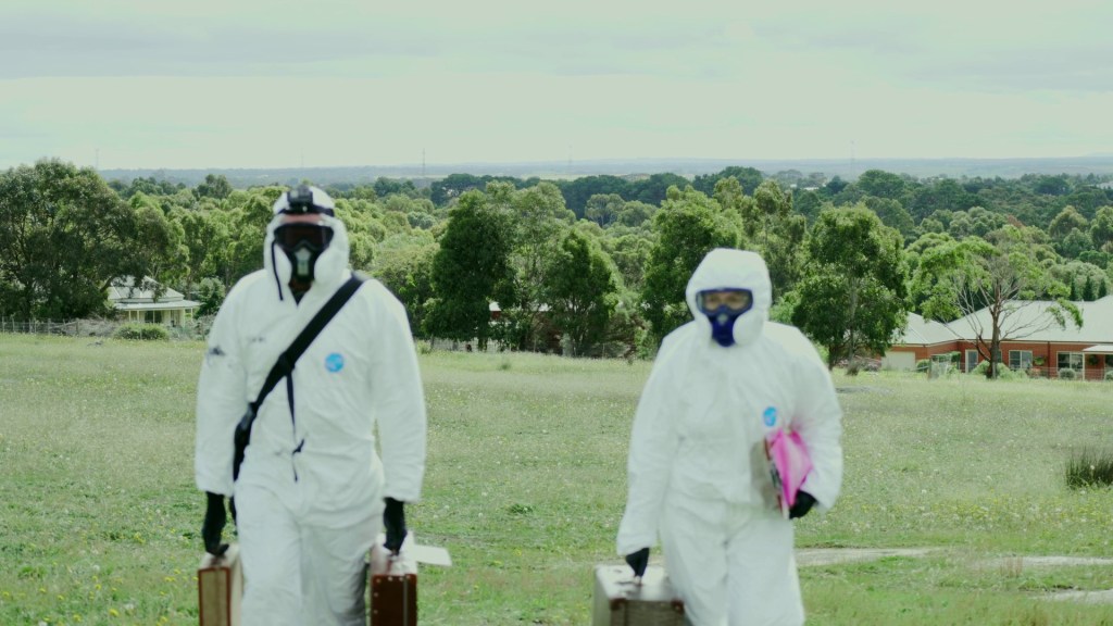 Background description of the film. This documentation-film features ‘Remote Access Agents’ delivering & enacting the Island Pilgrimage Art / Play / Ritual. Why: COVID-19 means the Island Pilgrims are in self-isolation in their homes. The ‘Remote Access Agents’ : symbols of Force, Influence, Control, Domination, Authority, Privilege, and Administration have experienced Wild Nature. Their Mission provides that the Island is visited and honored, the Island Pilgrims have participated in the Creative Occupation.